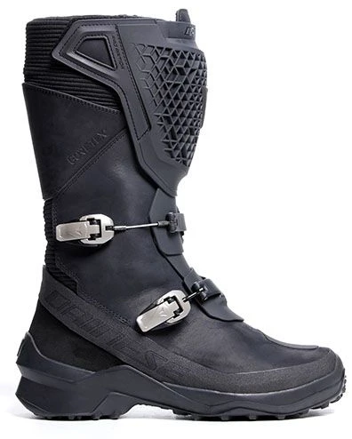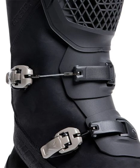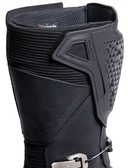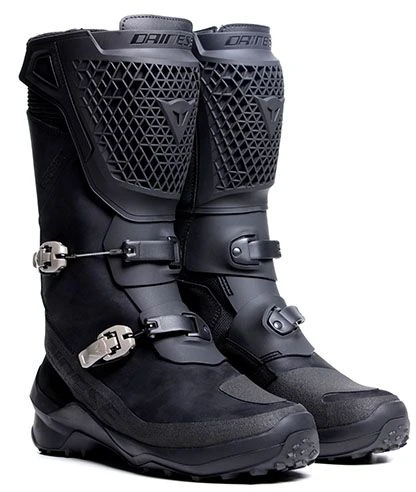 The Dainese adventure touring boots. Premium leather construction with waterproof and breathable Gore-Texยฎ Performance membrane. Innovative Pro-Armor shin guard and double metal lever closure.