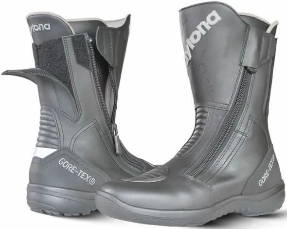The most widely-used daytona® motorcycle boot with numerous test awards. Often copied, never achieved. Perfect fit, available for narrow and wide feet and made from Hydrophobic special full cowhide. They are Watertight and breathable with GORE-TEX® climatic membrane and a Velcro fastener for different calf sizes.