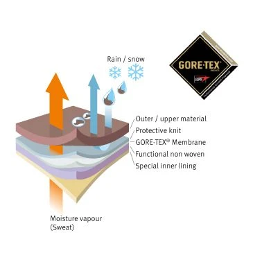 This fine material has important features such as long-term waterproofing capacity, excellent resistance to the most extreme temperatures and high resistance to wear and tear. The special microporous structure of the GORE-TEX® fabric in expanded PTFE contains around 1.4 thousand million microscopic pores per square centimetre. These pores are approximately 20,000 times smaller than a drop of water, but 700 times larger than a molecule of water vapour. So while water cannot penetrate the GORE-TEX® membrane in liquid form, sweat (water vapour) can easily evaporate. This results is a completely waterproof barrier that means the boot can be used in all climates, guaranteeing maximum comfort and optimal breathability.