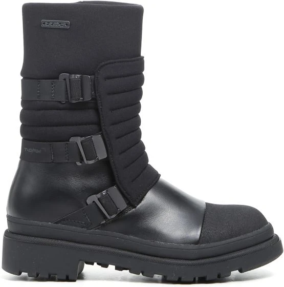 Designed for a womens foot shape, contoured and stretch calf profile.